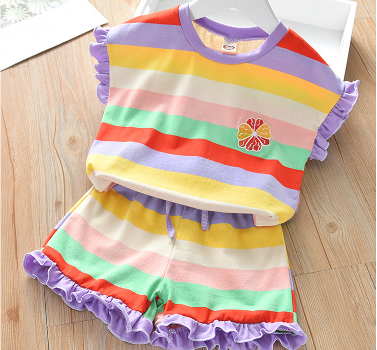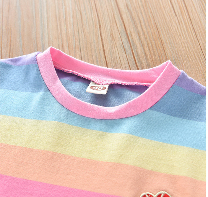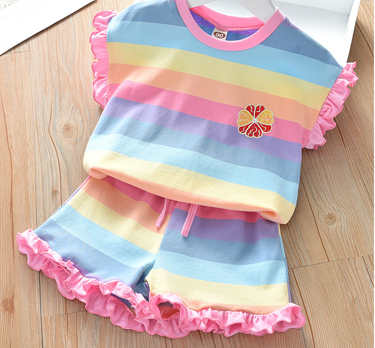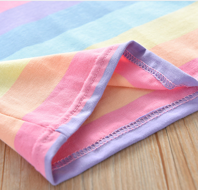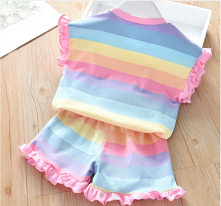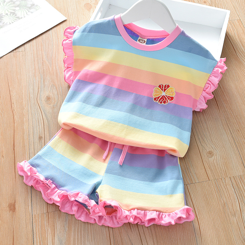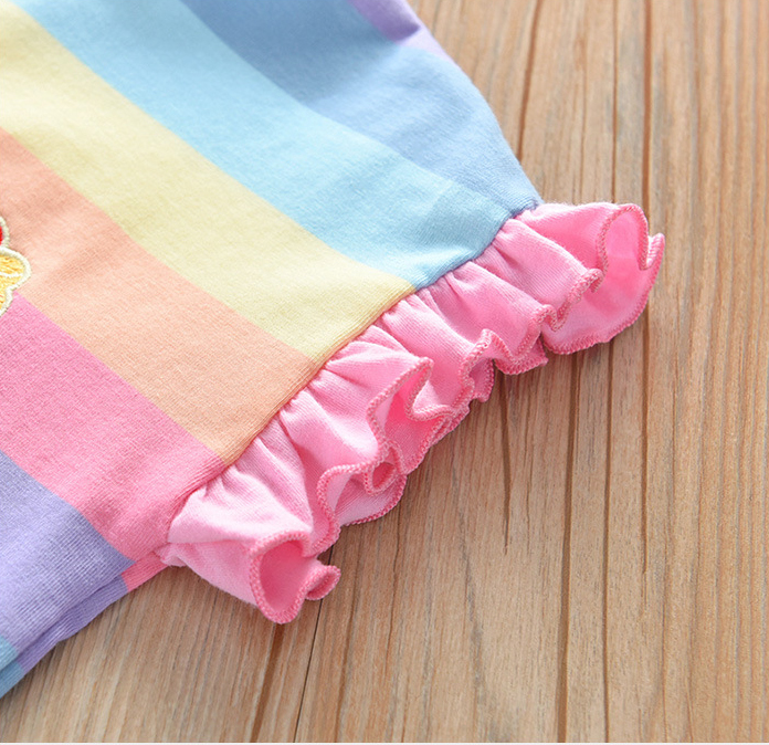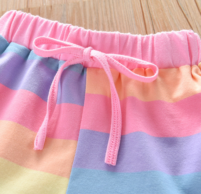 เสื้อยึดบวกกางเกงขาสั้น สีรุ้ง สวมใส่สบายสีสันสดใส สำหรับเด็กผู้หญิง 2-7 ปี
