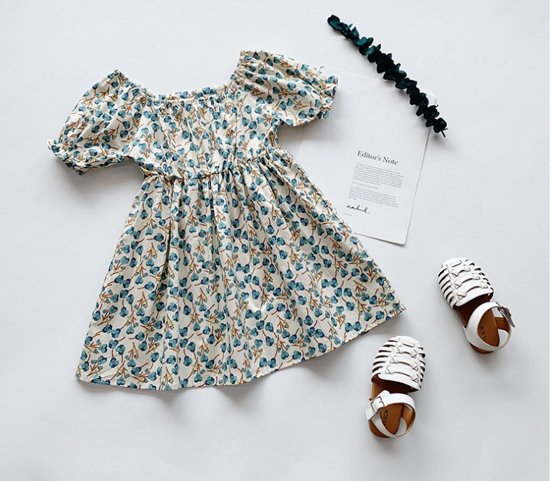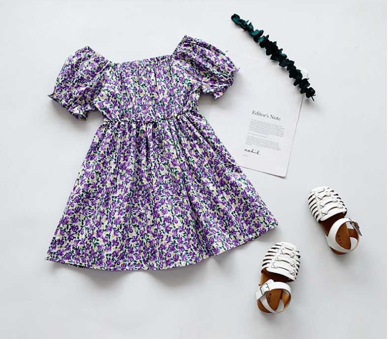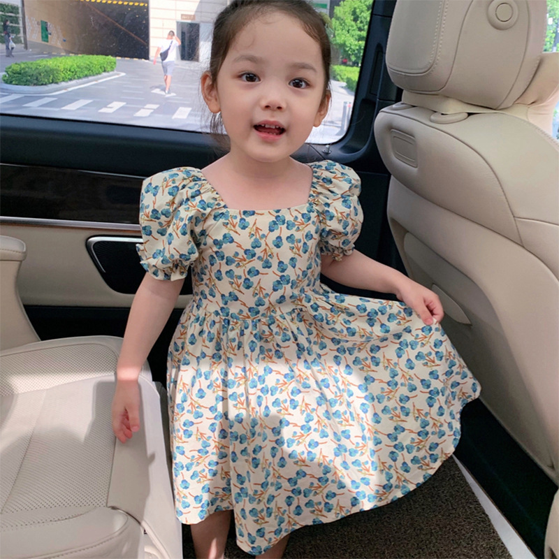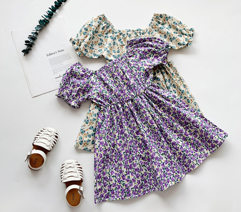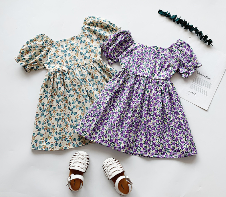 ชุดเดรสเด็กผู้หญิงลายดอกไม้2021 แขนสั้นสไตล์เจ้าหญิง