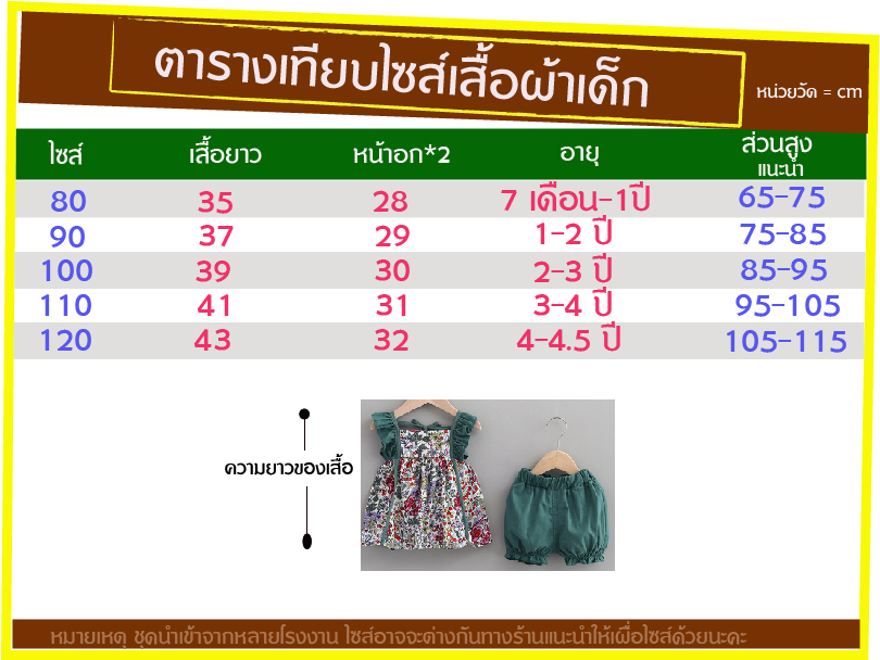ประเภท               ชุดเด็กผู้หญิง เสื้อบวกกางเกง