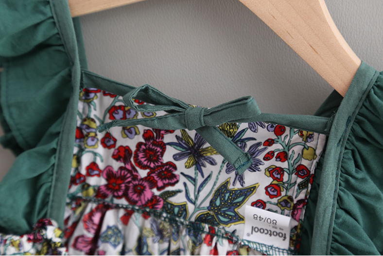ชุดเซ็ต 2 ชิ้น เด็กผู้หญิง สูทลายดอกไม้ แขนกุดมีระบาย สำหรับเด็ก 7เดือน ถึง 5 ปี
