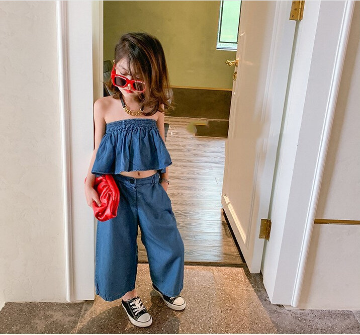 เสื้อผ้าเด็กยีนส์เกาะอก Kesorn Shop น้ำหนักเบา สไตล์สาวฮอตตัวน้อย สำหรับอายุ 1.5 ถึง 7 ปี ชุดเดรสเด็กผู้หญิง เสื้อผ้าเด็กผู้หญิง ชุดเด็กผู้หญิง