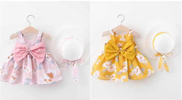 เสื้อผ้ชุดเดรสกระโปรงเด็ก Kesorn Shop โบว์ใหญ่มาพร้อมหมวก สไตล์เกาหลีน่ารัก ๆ สำหรับอายุ 6 เดือน ถึง 5 ปี ชุดเดรสเด็กผู้หญิง เสื้อผ้าเด็กผู้หญิง ชุดเด็กผู้หญิง