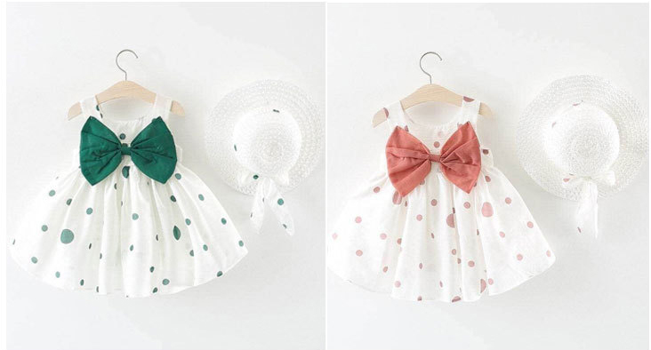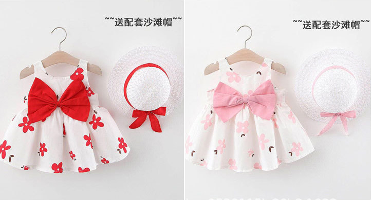 • ชุดเดรสกระโปรงเด็ก โบว์ใหญ่ มาพร้อมหมวก ไสตล์เกาหลี น่ารัก น่ารัก สำหรับอายุ 6 เดือน ถึง 5 ปี