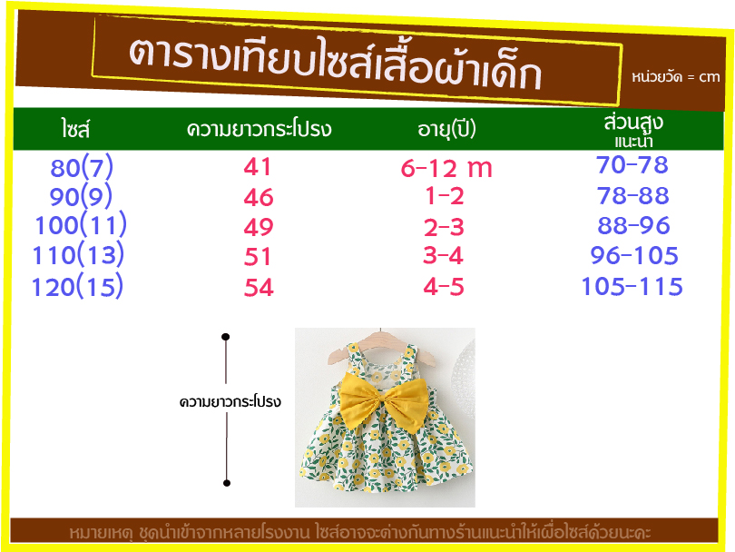 • ไซส์ 100 อายุ 2-3 ปี ส่วนสูงแนะนำ 88-96 cm