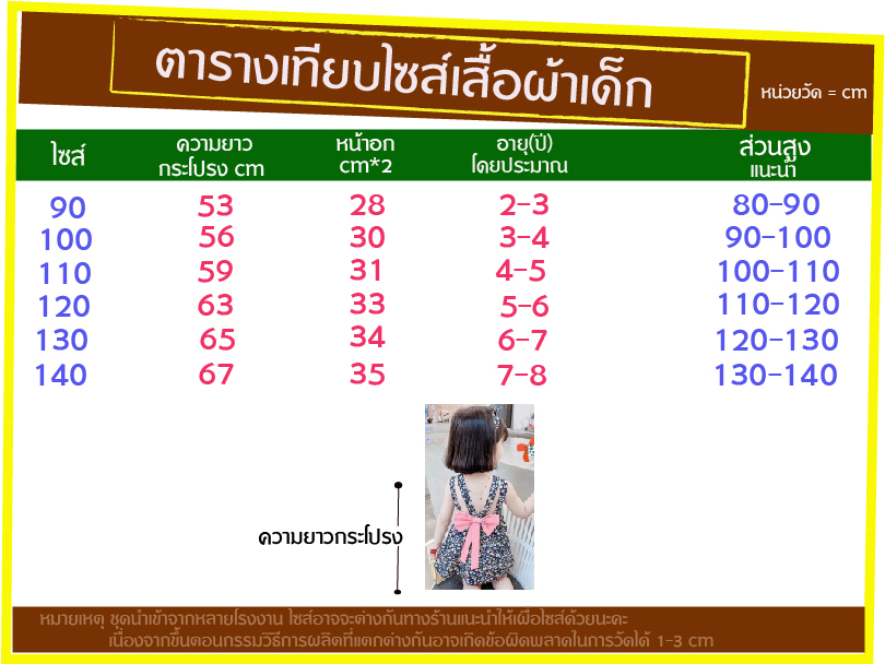 ร้าน Kesorn Shop ประเภท ชุดกระโปรงเด็ก เพศ หญิง องค์ประกอบผ้า คำอธิบาย ชุดเดรสกระโปรงเด็ก ลายดอกใหม่สไตล์ตะวันตกมาพร้อมที่คาดผมน่ารักๆ สำหรับน้อง 2-8 ปี ไซส์ 90 ส่วนสูงแนะนำ 80-90 cm ไซส์ 100 ส่วนสูงแนะนำ 90-100 cm ไซส์ 110 ส่วนสูงแนะนำ 100-110 cm ไซส์ 120 ส่วนสูงแนะนำ 110-120 cm ไซส์ 130 ส่วนสูงแนะนำ 120-130 cm ไซส์ 140 ส่วนสูงแนะนำ 130-140 cm การสั่งสินค้า ลูกค้าสามารถดูรายละเอียดการสั่งสินค้าได้จากตารางไซส์ซึ่งจะประกอบด้วยขนาดของเสื้อผ้า อายุ ส่วนสูงที่แนะนำ ซึ่งแนบไปพร้อมกับรูปของผลิตภัณฑ์ที่โชว์หน้า web ค่ะ แต่ข้อควรระวังคือ สินค้ามีการนำเข้าจากหลายโรงงานและมีการผลิตหลาย lot ซึ่งไซส์อาจจะแตกต่างกัน ทางร้านแนะนำให้เผื่อไซส์ด้วยนะค่ะ หรือไม่แน่ใจก็สามารถสอบถามมาที่ทางร้านก่อนก็ได้ค่ะ ![]() ![]() ![]() ![]() ![]() ![]() ![]() ![]() ![]() ![]() ![]() ![]() ![]() ![]() ![]() ![]() ![]() ![]() ![]() ![]() ![]() ![]() ![]() ![]() ![]() ![]() ![]() ![]() ![]() ![]() ![]() ![]() ![]() ![]() ![]() ![]() ![]() ![]() |