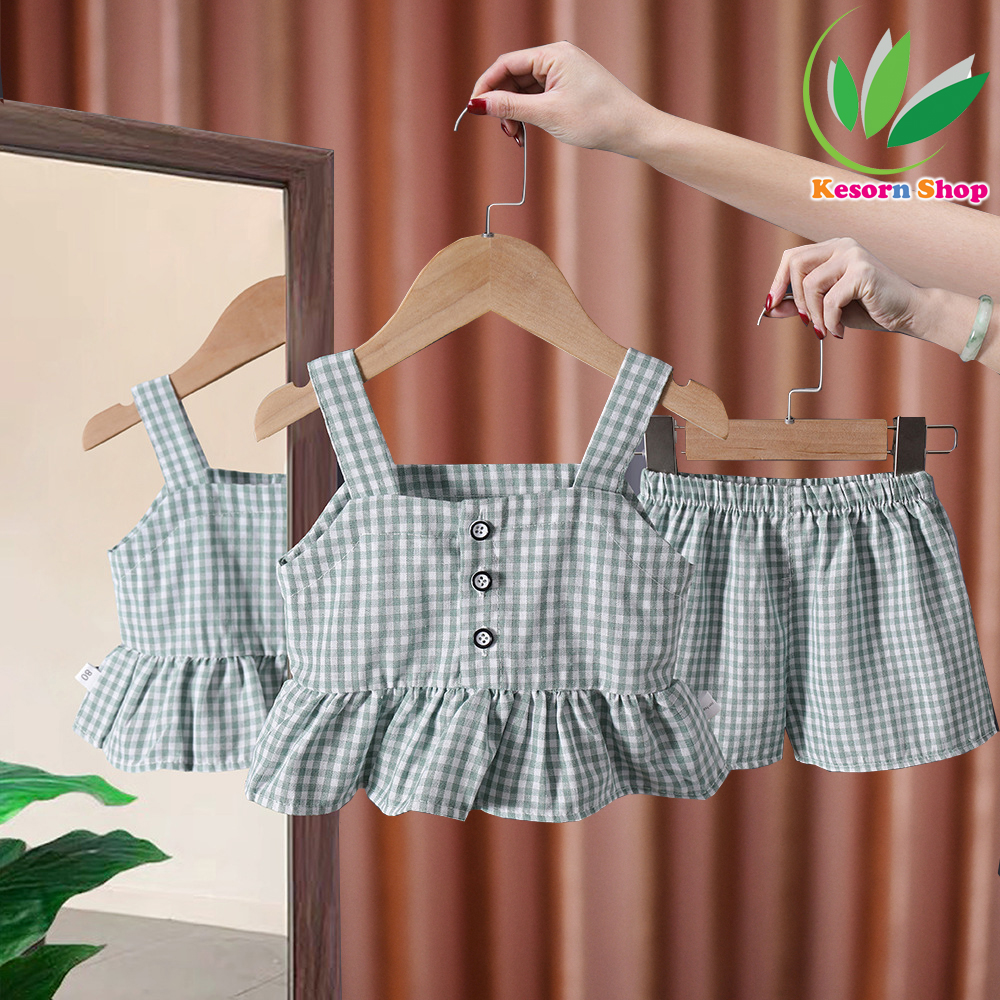 Kesorn Shop ชุดเด็กผู้หญิงเสื้อบวกกางเกง ลายสก๊อต สำหรับ 6m-6 ปีโดยประมาณ ชุดเด็กผู้หญิง ชุดเด็กผญ เสื้อผ้าเด็ก