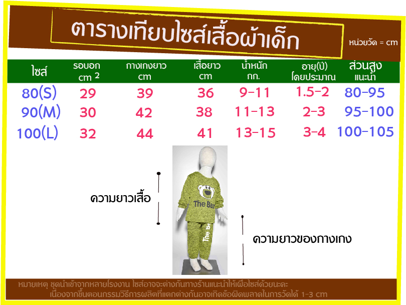 ร้าน Kesorn Shop ประเภท ชุดเซ็ทเสื้อและกางเกง เพศ เพศ ชาย/หญิง องค์ประกอบผ้า คำอธิบาย ชุดกันหนาวเด็ก ลายหมี เสื้อแขนยาวบวกกางเกงขายาว สำหรับนอง 1-4 ปี ไซส์ 80 ส่วนสูงแนะนำ 80-95 cm น้ำหนัง 9-11 กก ไซส์ 90 ส่วนสูงแนะนำ 95-100 cm น้ำหนัง 11-13 กก ไซส์ 100 ส่วนสูงแนะนำ 100-105 cm น้ำหนัง 13-15 กก การสั่งสินค้า ลูกค้าสามารถดูรายละเอียดการสั่งสินค้าได้จากตารางไซส์ซึ่งจะประกอบด้วยขนาดของเสื้อผ้า อายุ ส่วนสูงที่แนะนำ ซึ่งแนบไปพร้อมกับรูปของผลิตภัณฑ์ที่โชว์หน้า web ค่ะ แต่ข้อควรระวังคือ สินค้ามีการนำเข้าจากหลายโรงงานและมีการผลิตหลาย lot ซึ่งไซส์อาจจะแตกต่างกัน ทางร้านแนะนำให้เผื่อไซส์ด้วยนะค่ะ หรือไม่แน่ใจก็สามารถสอบถามมาที่ทางร้านก่อนก็ได้ค่ะ ร้าน KesornShop #เสื้อผ้าเด็ก# #ชุดเด็กน่ารัก #ชุดเด็กราคาถูก #ชุดแขนยาวเด็ก #ชุดเด็กคุณภาพดี #เสื้อผ้าเด็กน่ารัก #เสื้อผ้าเด็กผู้หญิง #เสื้อผ้าเด็กผู้ชาย #แฟชั่นเด็ก ![]() ![]() ![]() ![]() ![]() ![]() ![]() ![]() |