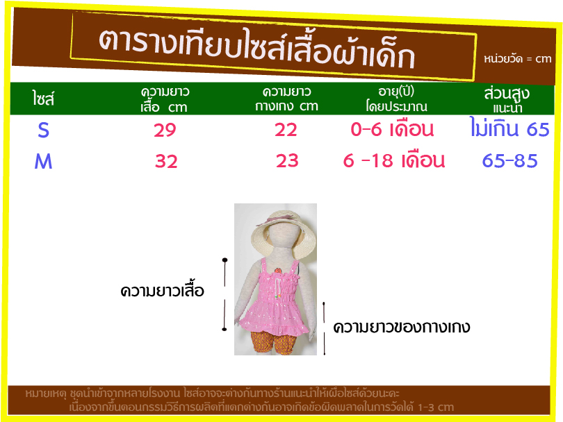 - ไซส์ 0-6 เดิอน ส่วนสูงแนะนำไม่เกิน 65 cm