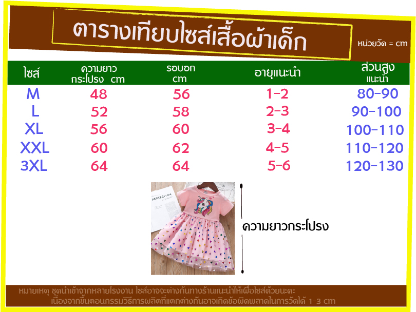 ไซส์ 3XL ส่วนสูงแนะนำ 120-130 cm