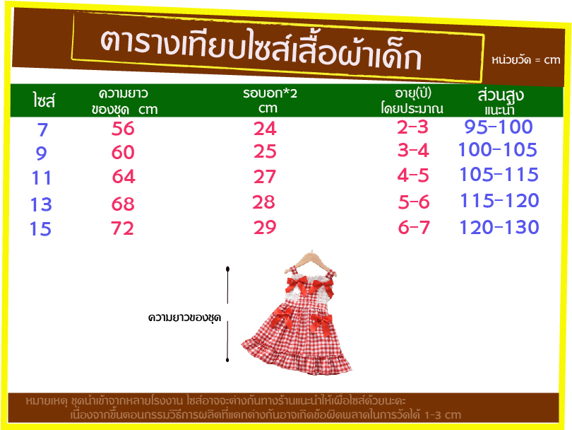 ไซส์ 7 ส่วนสูงแนะนำ 95-100 cm