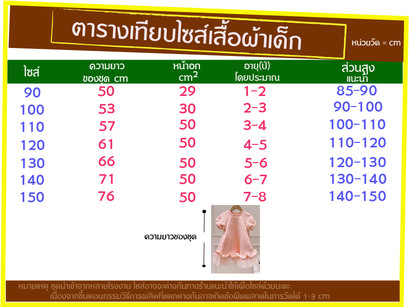 ไซส์ 90 ส่วนสูงแนะนำ 85-95 cm