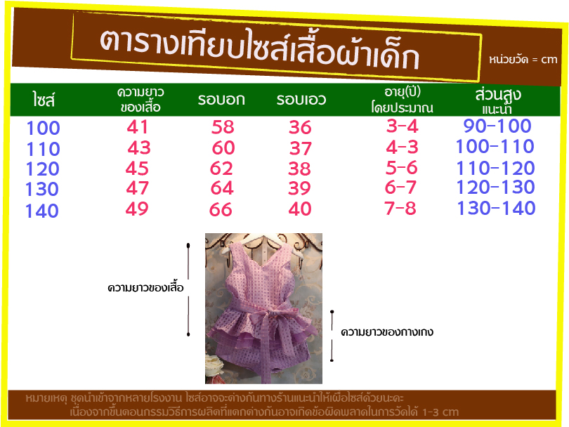 ไซส์ 100 ส่วนสูงแนะนำ 90-100 cm