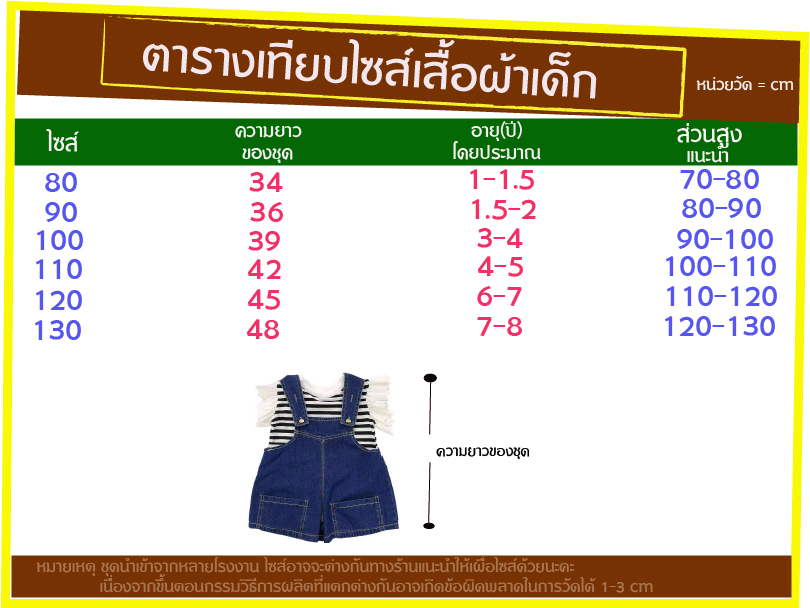 ไซส์ 90 ส่วนสูงแนะนำ 80-90 cm