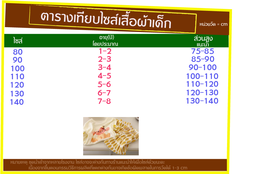 ไซส์ 100 ส่วนสูงแนะนำ 90-100 cm