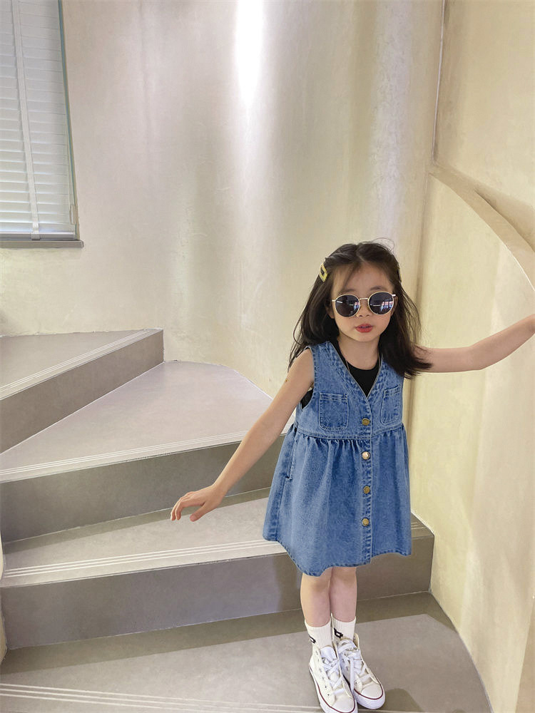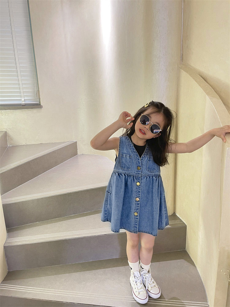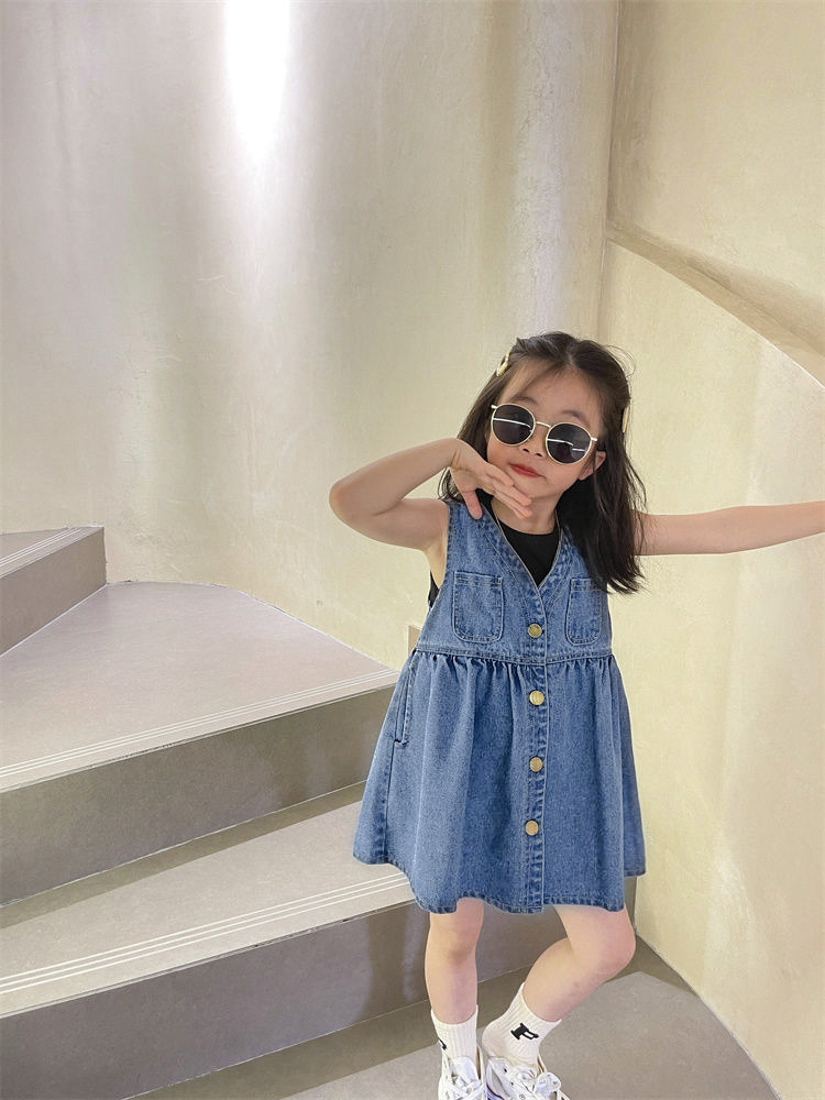 ชุดกระโปรงยีนส์เด็ก รหัส011-11 ชุดยีนส์กระโปรงเด็กแฟชั่นสไตล์เกาหลีสุดเก๋ สำหรับน้อง 1-7 ปีโดยประมาณ