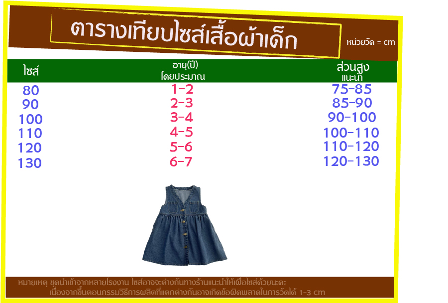 ไซส์ 100 ส่วนสูงแนะนำ 90-100 cm