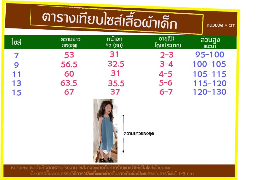 ไซส์ 7 ส่วนสูงแนะนำ 95-100 cm