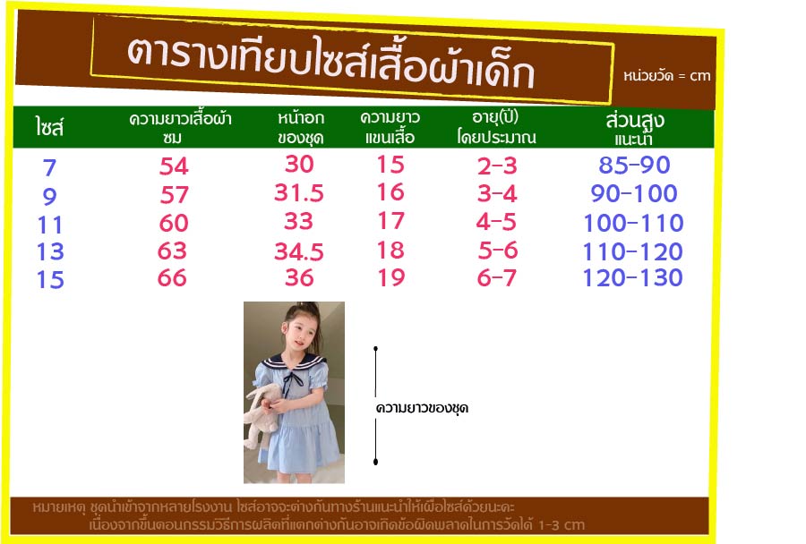 ไซส์ 7 ส่วนสูงแนะนำ 95-100 cm