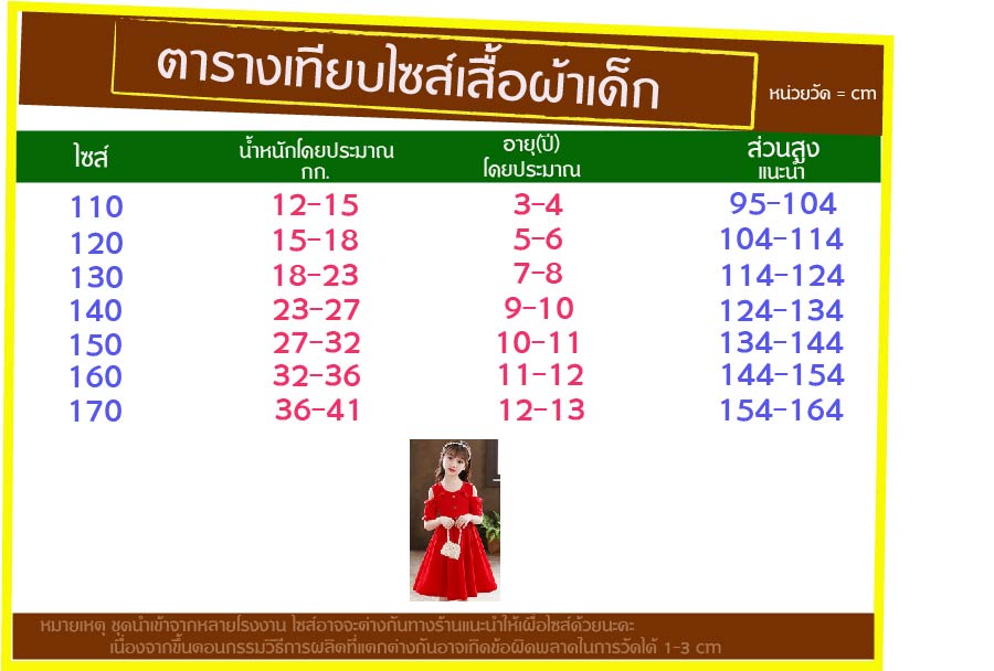 ไซส์  120 ส่วนสูงแนะนำ  104-114 cm
