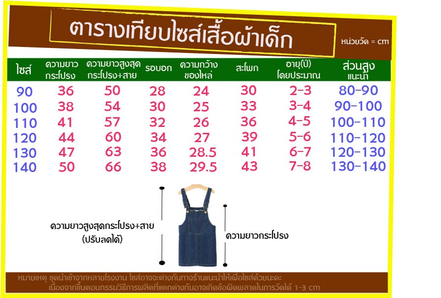 ไซส์  90 ส่วนสูงแนะนำ   80-90 cm