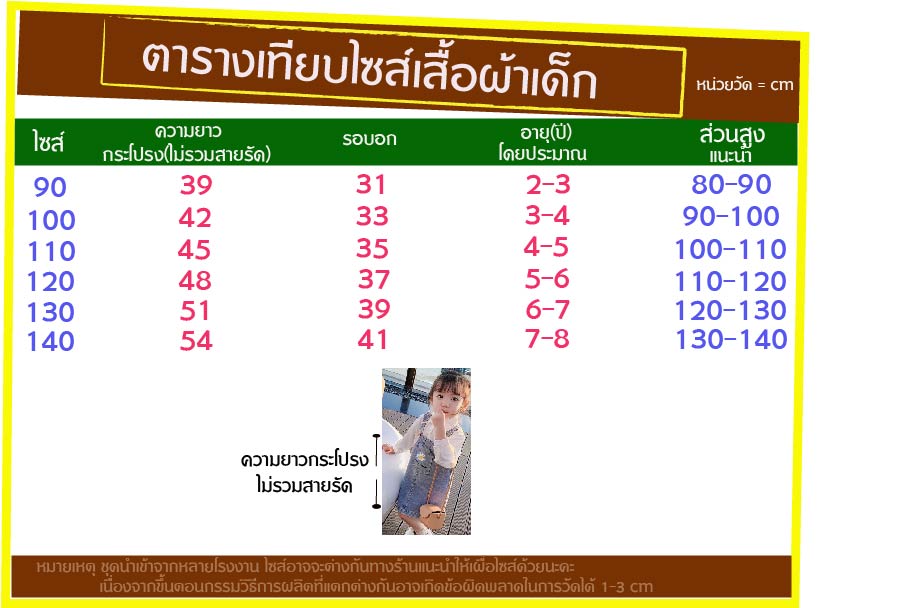 ไซส์  90 ส่วนสูงแนะนำ   80-90 cm