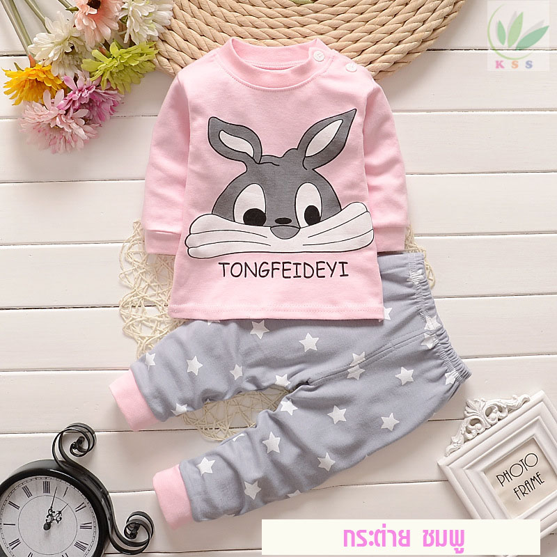 ชุดนอนและชุดกันหนาวเด็ก ลายกระต่าย สีชมพู