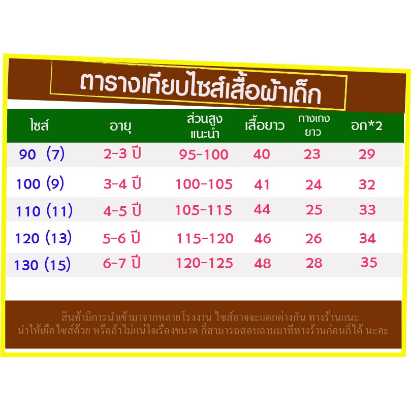 ร้าน Kesorn Shop ประเภท ชุดเด็กผู้หญิง ชุดยีนส์เข้าสุดแขนขาสั้นด็กผู้หญิง 2-7 ปี เพศ หญิง องค์ประกอบผ้า ยีนส์ คำอธิบาย ชุดเด็กผู้หญิงอายุ 2-7 ปี ยีนส์เข้าสุดแขนขาสั้นด็กผู้หญิง 2-7 ปี รูปทรงของเสื้อออกแบบให้ระบายอากาศได้ดี เหมาะกับสภาพอากาศในเมืองไทย ลูกค้าสามารถดูรายละเอียดการสั่งสินค้าได้จากตารางไซส์ซึ่งจะประกอบด้วยขนาดของเสื้อผ้า อายุ ส่วนสูงที่แนะนำ ซึ่งแนบไปพร้อมกับรูปของผลิตภัณฑ์ที่โชว์หน้า web ค่ะ แต่ข้อควรระวังคือ สินค้ามีการนำเข้าจากหลายโรงงานและมีการผลิตหลาย lot ซึ่งไซส์อาจจะแตกต่างกัน ทางร้านแนะนำให้เผื่อไซส์ด้วยนะค่ะ หรือไม่แน่ใจก็สามารถสอบถามมาที่ทางร้านก่อนก็ได้ค่ะ ขนาด ไซส์ 90 (7), อายุ 2-3ปี , ส่วนสูงแนะนำ 95-100 ซม ไซส์ 100 (9) , อายุ 3-4ปี , ส่วนสูงแนะนำ 100-105 ซม ไซส์ 110 (11), อายุ 4-5ปี , ส่วนสูงแนะนำ 105-115 ซม ไซส์ 120 (13), อายุ 5-6ปี , ส่วนสูงแนะนำ 115-120 ซม ไซส์ 130 (15), อายุ 6-7ปี , ส่วนสูงแนะนำ 120-125 ซม ร้าน KesornShop #ชุดนอนเด็ก #ชุดนอนเด็กขายาว #ชุดนอนเด็กแขนยาว #ชุดเด็กน่ารัก #ชุดเด็กราคาถูก #ชุดนอนลายการ์ตูน #ชุดนอนเด็กผู้หญิง #ชุดนอนเด็กผู้ชาย #ชุดนอนเด็กราคาถูก #ชุดนอนเด็กเล็ก #ชุดแขนยาวเด็ก #ชุดเด็กคุณภาพดี #ชุดเด็กราคาถูก #ชุดแขนยาว #เสื้อผ้าเด็ก #เสื้อผ้าเด็กน่ารัก #เสื้อผ้าเด็กผู้หญิง #เสื้อผ้าเด็กผู้ชาย