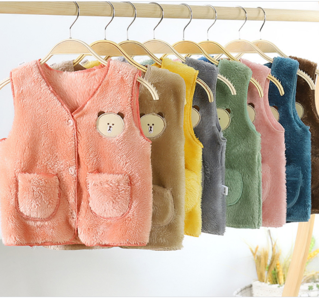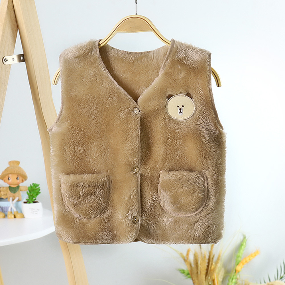เสื้อกั๊กเด็ก Kesorn Shop ปักอกหมี ขนปุยให้ความอบอุ่นสำหรับเด็ก ในหน้าหนาว หรือ นอนห้องแอร์